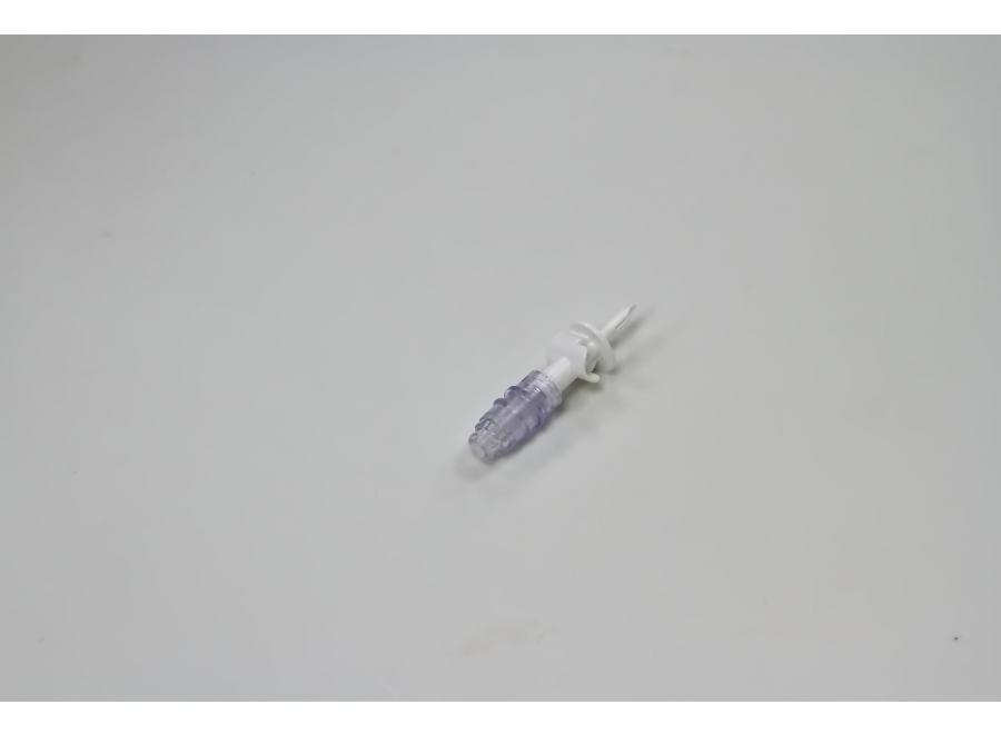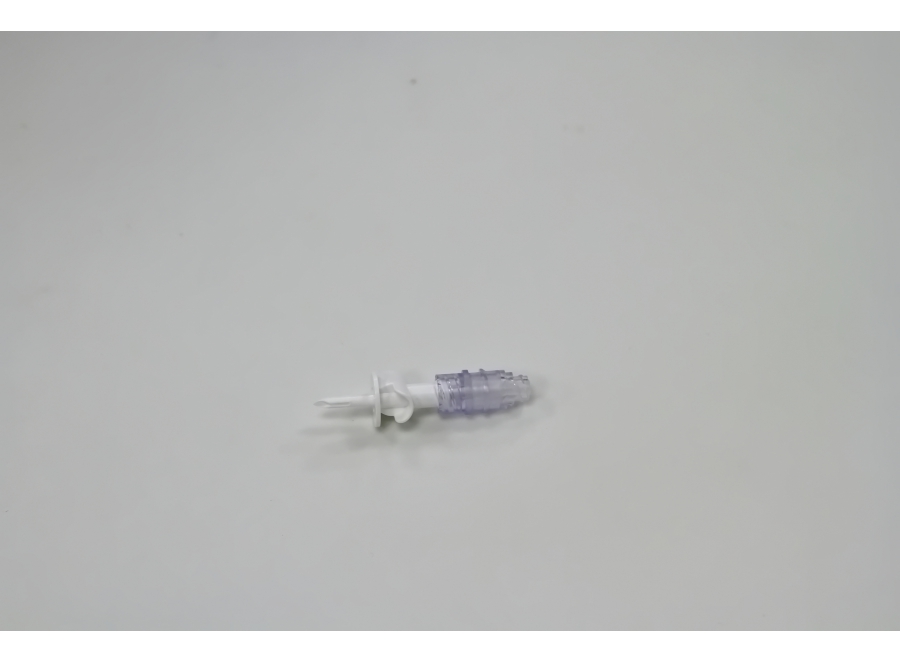 4. Spike's puncture needle has no missing corners. The connector end features a concealed dual-hole design on the side.